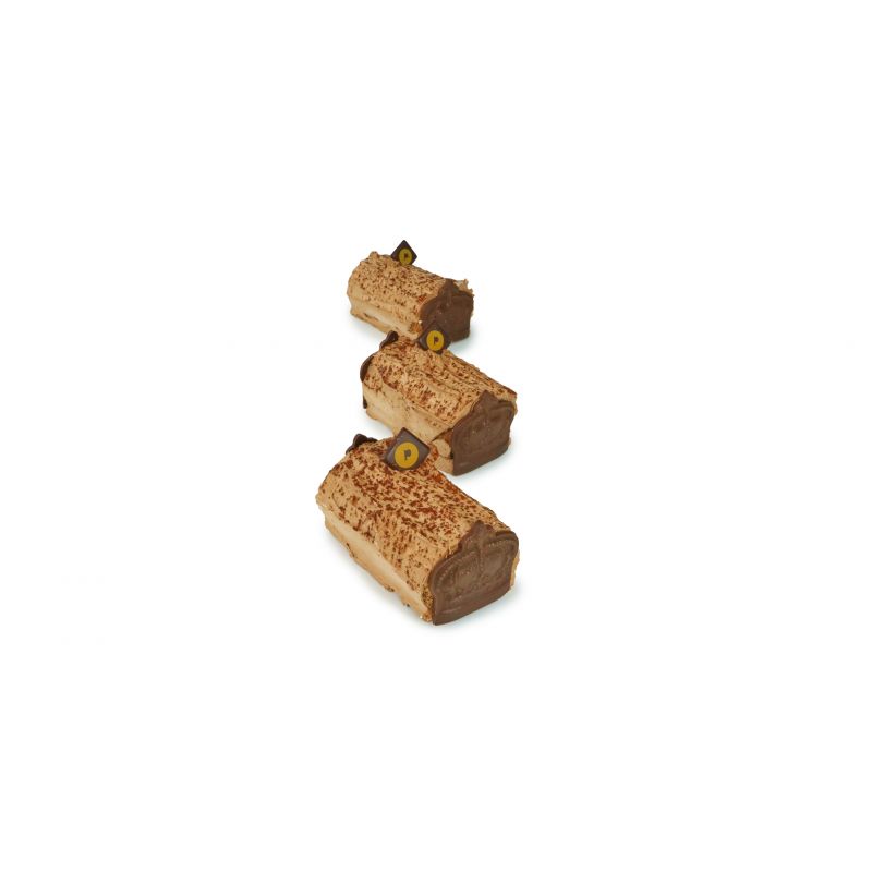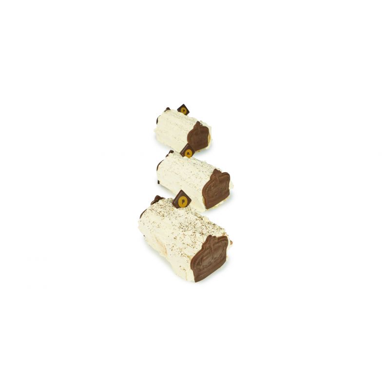 Présence de décors chocolat sur toutes les bûches (émulsifiant : lécithine de soja).