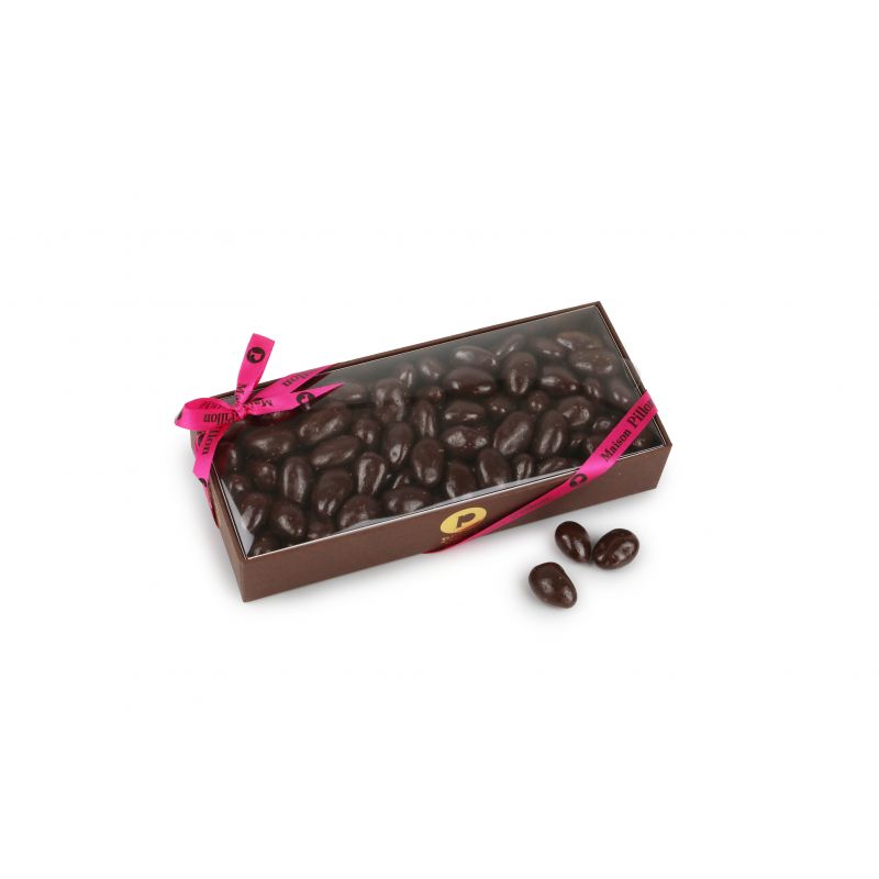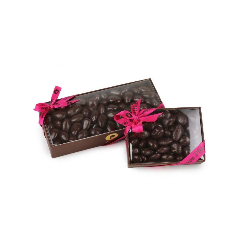 Cette recette classique est sublimée par des ingrédients de première qualité : amande "Valencia" et couverture "signature" noire. Toutes deux, torréfiées, conchées, enrobées dans nos ateliers.
