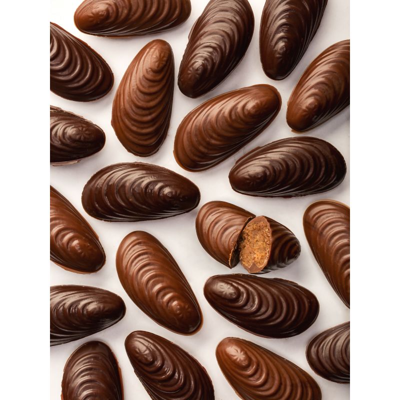 Laissez-vous tenter par cet assortiment de moules. Enrobées de chocolat au lait ou de chocolat noir, elles sont fourrées d’un délicieux praliné amande noisette Maison.